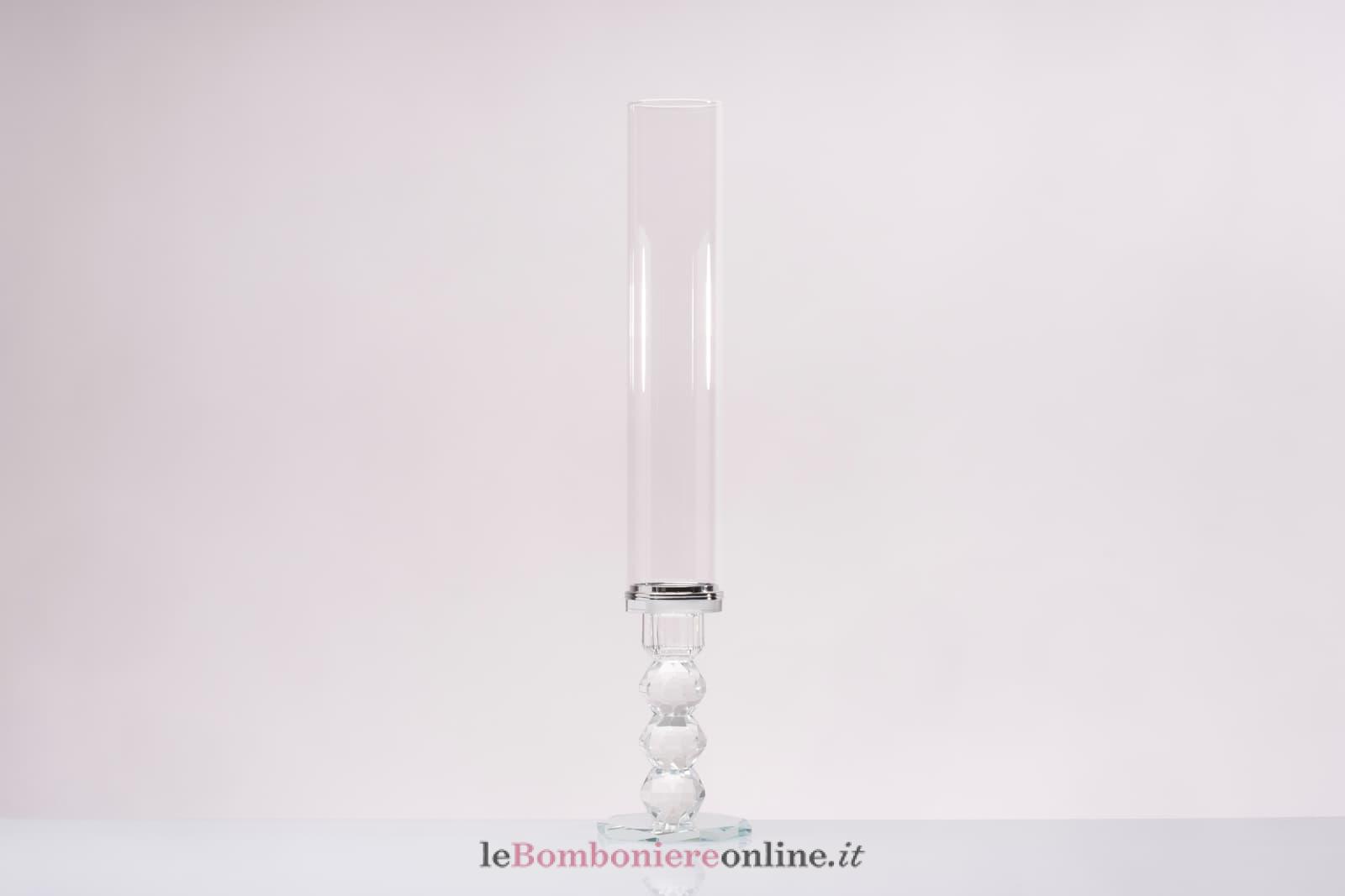 Candeliere in cristallo, cm 45.5 H, compreso di sacchetto porta confetti e la scatola regalo Morena Design. Il prezzo include la confezione con nastri in doppio raso, organza, o una combinazione di entrambe i materiali.