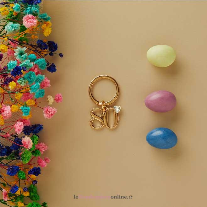 Portachiavi in acciaio oro con NR. 80, anello Ø 2.5 cm – L. 5.5 cm, completo di confezione.
