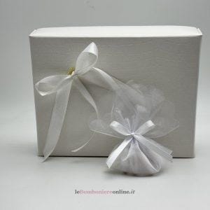 Ogni bomboniera è corredata di scatola e sacchetto, nastri e confetti. Per quanto riguarda la scelta della confezione potete optare sia tra quelle indicate nell’apposita sezione sia richiedere l’opzione “personalizzata”.