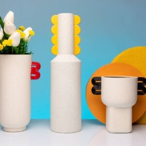 Vaso in ceramica con manici colorati, disponibile in 3 misure, cm 20 x 13 20 h.